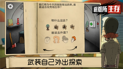 2、自由选择救援对象和携带物资,决定庇护所生存时长,完成冒险旅程。