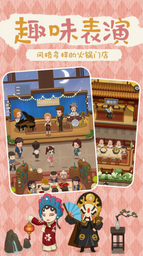 • 动态成长系统:通过积累收益逐步扩大店面规模,解锁高级包厢区域,最终实现跨区域连锁经营,打造知名火锅品牌。