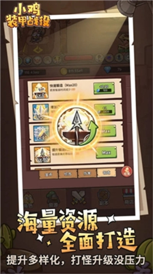 1、通过屏幕点击机制获取金币和资源,升级小鸡的攻击和防御能力,逐步强化部队实力。