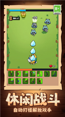 游戏包含挂机玩法元素,玩家可通过合并方式获取新英雄角色。操作设计简单易上手,玩家能轻松突破自身极限挑战。采用俯视视角,角色可自动攻击,玩家可自由选择难度级别。玩家还能提升角色等级,快速应对各种敌人,并激发角色的潜在能力。