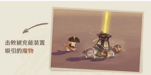 击败魔物是高效获取能量的途径。魔物类型包括小型沙虫和元素生物,建议使用范围攻击角色,如风元素扩散伤害,以快速清理群敌。同时,注意保护充能装置,避免被魔物破坏。